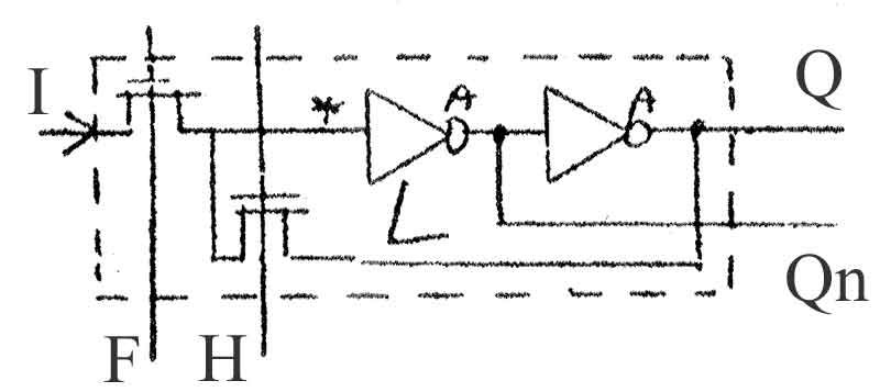 control, H the hold control, and Q/Qn the outputs. When F is high