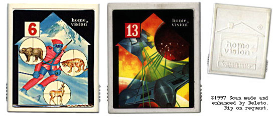 Base Attack (VCS83113) and Ski Hunt (VCS83106) are just two of the 25 or so games by home vision. Most of these games aren'toriginal, but copies (Base Attack is the same as Bomb's Z-Tack). These clonedgames are mostly the same games that are offered by many of the more "underground" publishers like ITT, Bomb Onbase, Sancho (and , and the BIT Corporation(and Puzzy). Whether this "game-swappping" was part of a big deal or plainillegal, remains vague. The carts and artwork however, are very original, and it may bepossible that home vision had some game programmers as well.