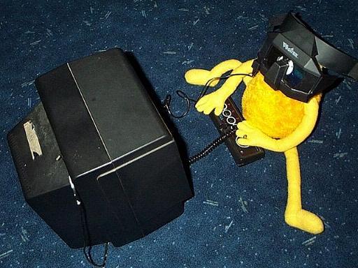 Flat Eric m'a rendu visite ce week end. C'est un grand nostalgique des vieux jeux video lui aussi. Il a même été impliqué dans pas mal de projet de l'époque à savoir: Prototype de Vectrex couleur (uniquement le jaune), MO5 jaune, etc.. Mais bon, le problème c'est que Flat Eric est muet...donc j'ai pas appris grand chose. Pas grave, on a joué.
